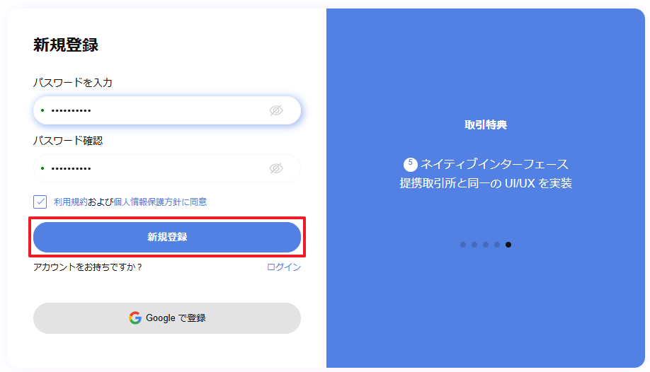 パスワードを入力後、「会員登録」ボタンをクリックします。