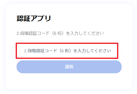 Google Authenticatorを起動し、画面に表示された6桁の認証コードを入力した後、「送信」ボタンをクリックしてください。