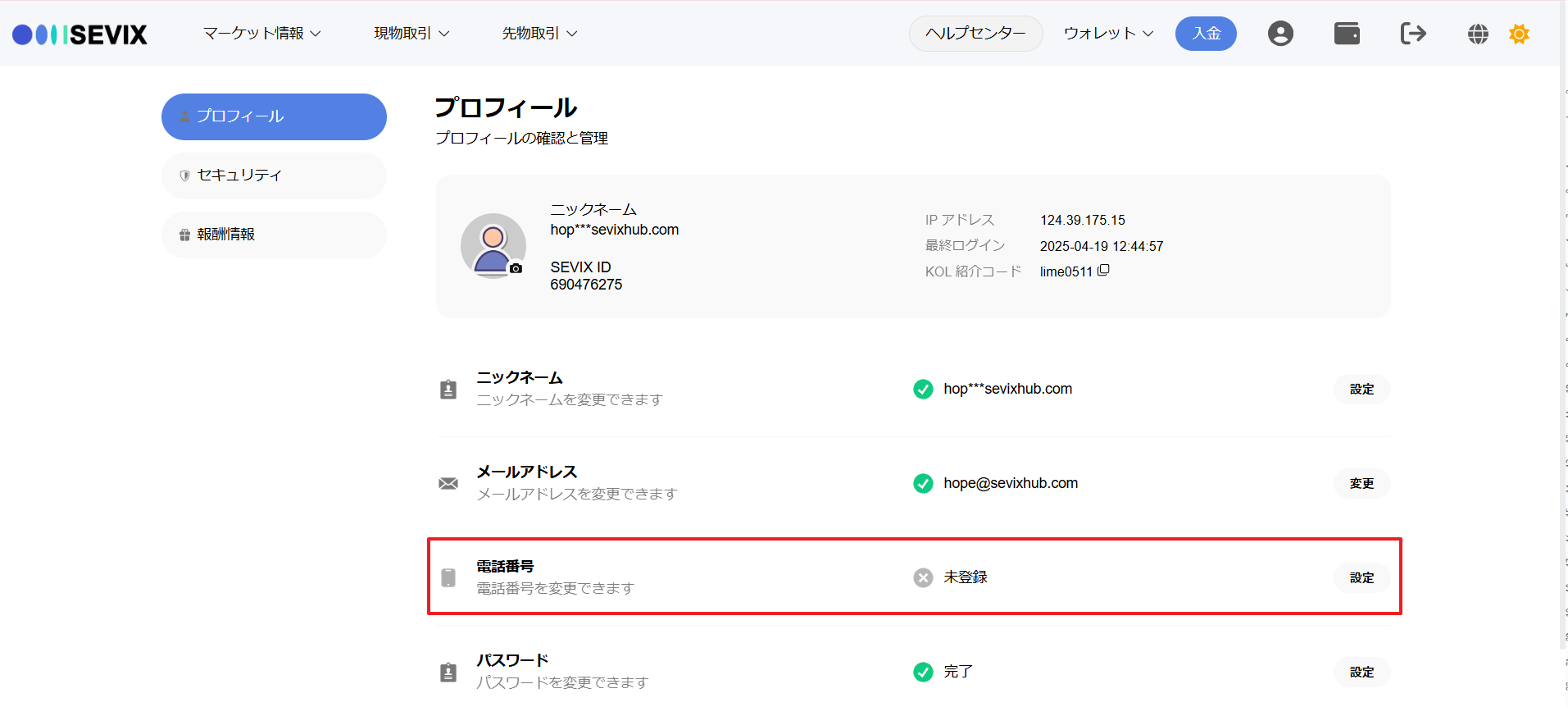 !! SEVIXHUBで登録されたメールアドレスまたは携帯番号を変更するには、次のガイドラインを参照してください: