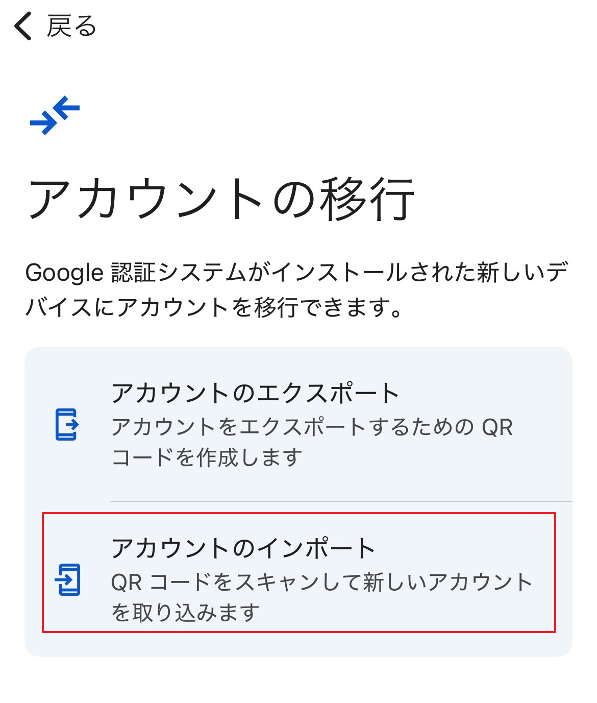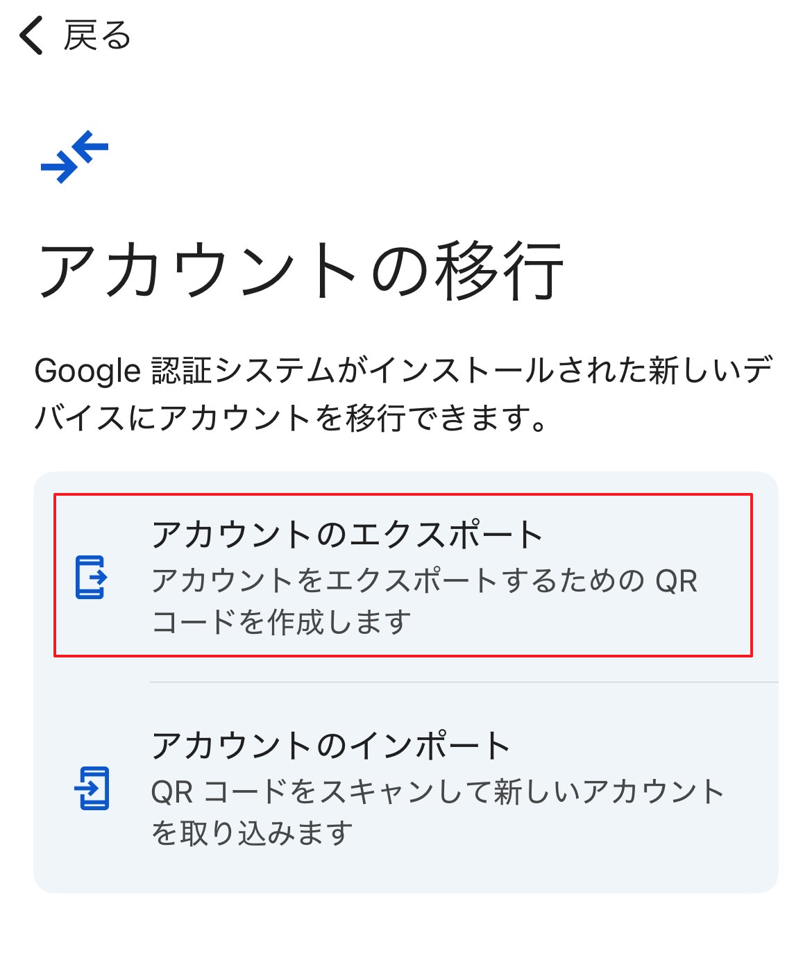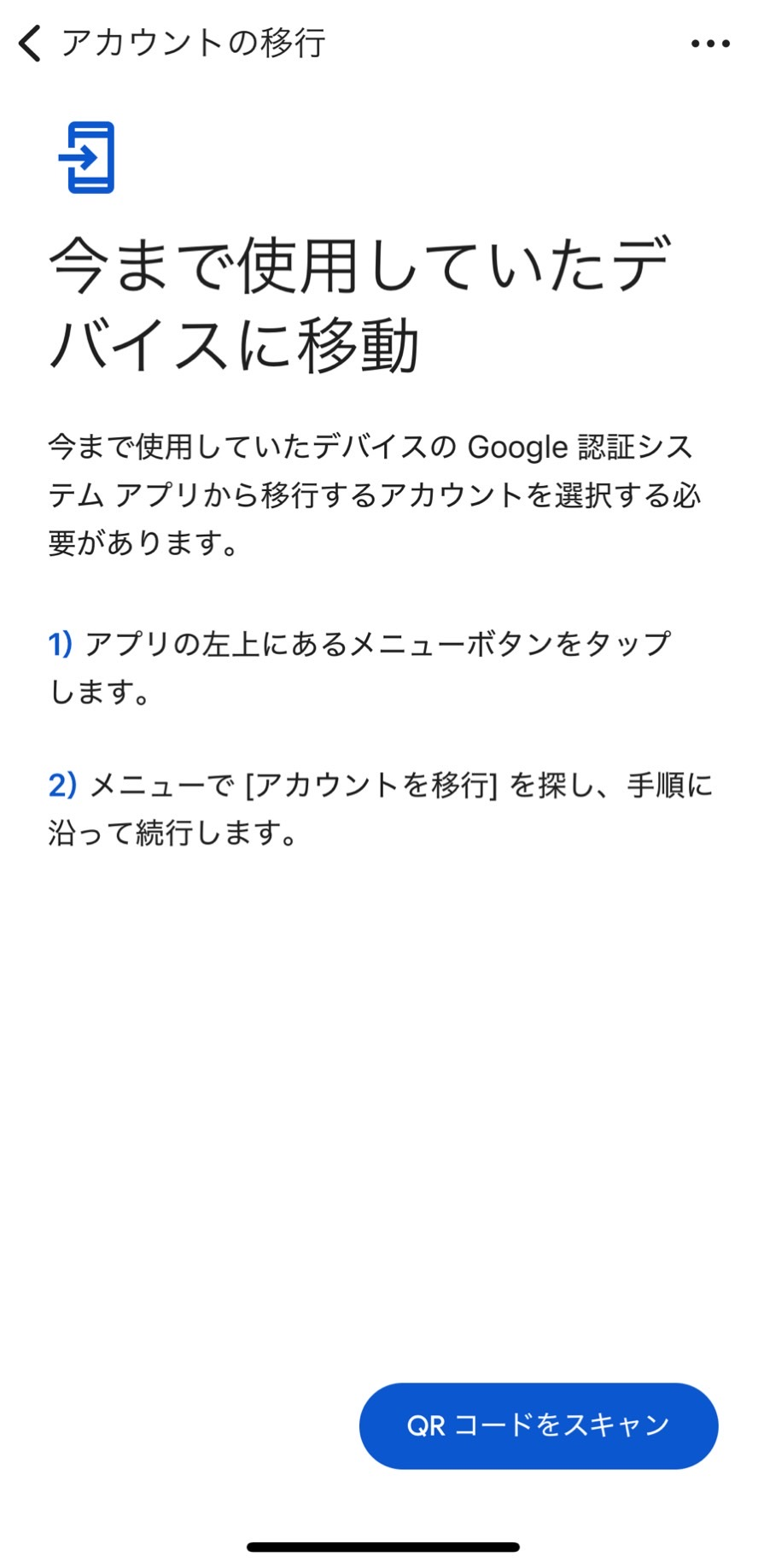 新しい携帯電話のGoogle OTP(Google Authenticator)アプリで次のステップに従ってください。