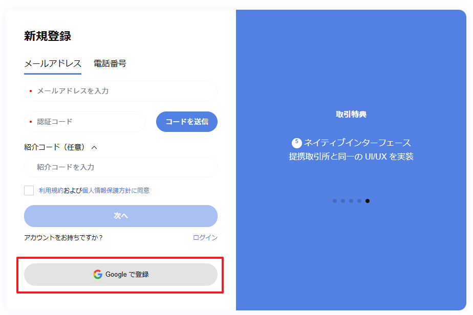 SEVIXのウェブサイトでは、Googleアカウントを連携することで簡単に登録することができます。